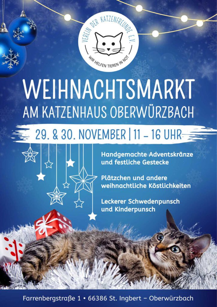 Besuchen Sie unseren gemütlichen Weihnachtsmarkt am Katzenhaus zum 1. Adventswochenende. Freuen Sie sich auf eine festliche Auswahl an Adventskränzen und Gestecken u.v.m. Mit jedem Kauf unterstützen Sie unsere Kätzchen – alle Einnahmen kommen ihnen zugute. Wir freuen uns auf Ihren Besuch und eine stimmungsvolle Adventszeit.