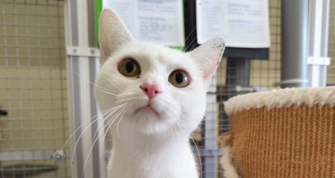 Die schneeweiße Aurora ist einfach eine liebe Katze. Anfangs schüchtern, taut sie aber schnell auf.