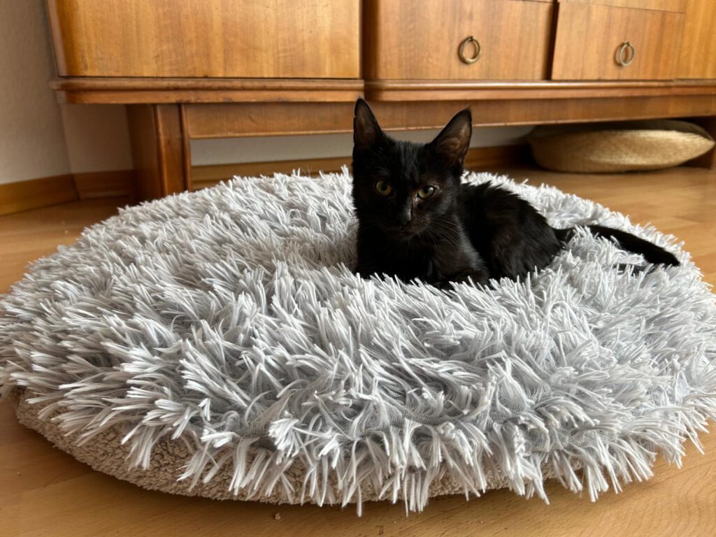 Elsa ist eine junge Katze voller Neugier und Lebensfreude. Alterstypisch verspielt und aufgeweckt möchte sie immer dabei sein – egal ob in der Küche, im Bad oder mitten im Alltag. Nichts entgeht ihr: Jede neue Tüte und jeder unbekannte Gegenstand wird aufmerksam begutachtet und natürlich ausgiebig getestet.