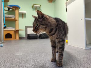 Die Menschen haben die Botschaft verstanden und ihn ins Katzenhaus gebracht. Und jetzt sitzt er hier, lässig wie immer und wartet auf seine große Chance, sein Revier vom Asphalt in ein gemütliches Wohnzimmer zu verlegen.