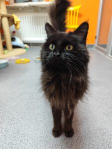 Saphira ist eine schwarze Langhaar-Schönheit mit einem sanften Wesen und einer großen Portion Neugier. Die liebe Katze begrüßt Menschen offen und möchte am liebsten überall dabei sein. Sie ist sehr sozial, liebt Gesellschaft und zeigt sich im Umgang mit anderen Katzen freundlich und unkompliziert.